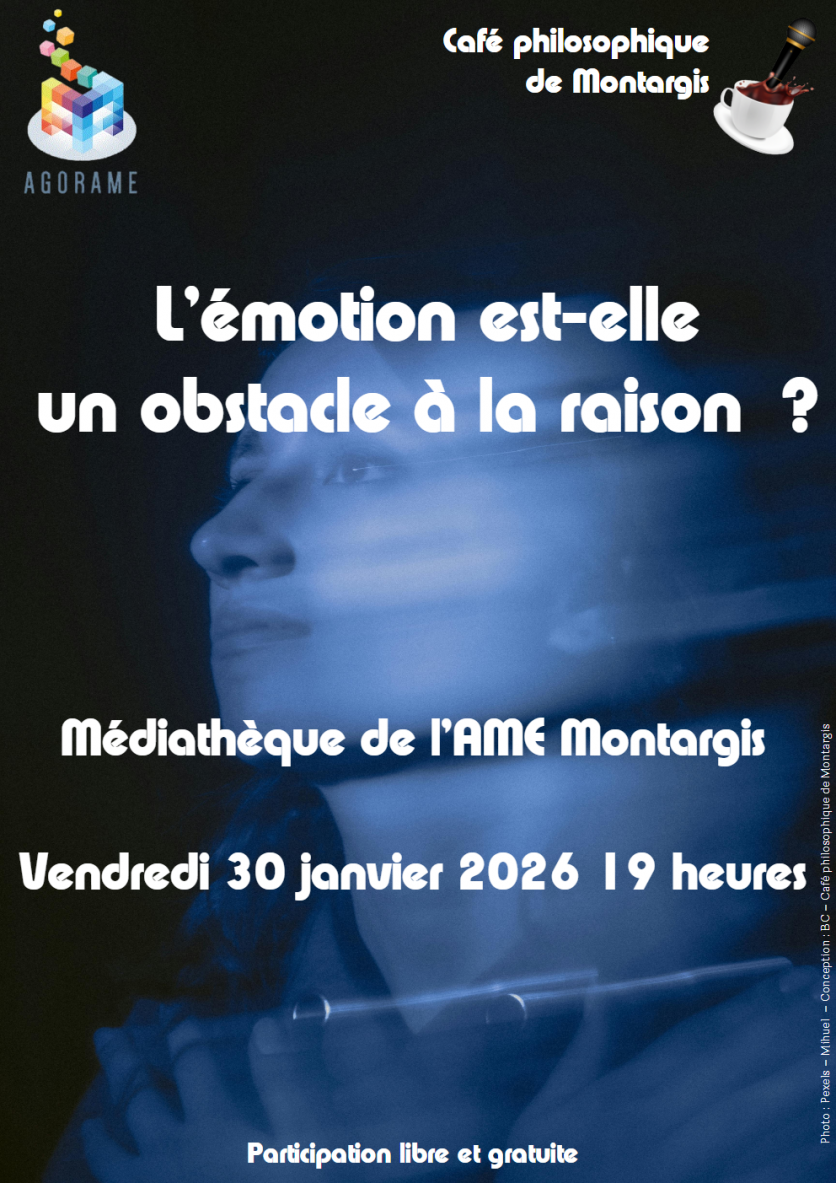 Le Café philosophique de Montargis proposera son prochain rendez-vous le vendredi 30 janvier prochain à la Médiathèque de Montargis, à 19 heures. Le sujet de la soirée portera sur cette question : "L’émotion est-elle un obstacle à la raison ?"